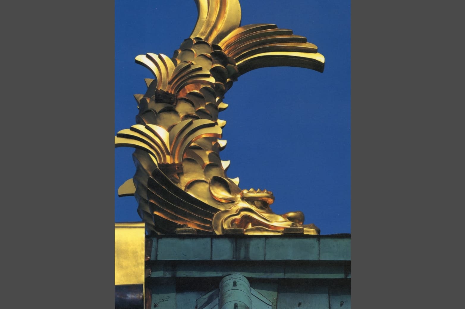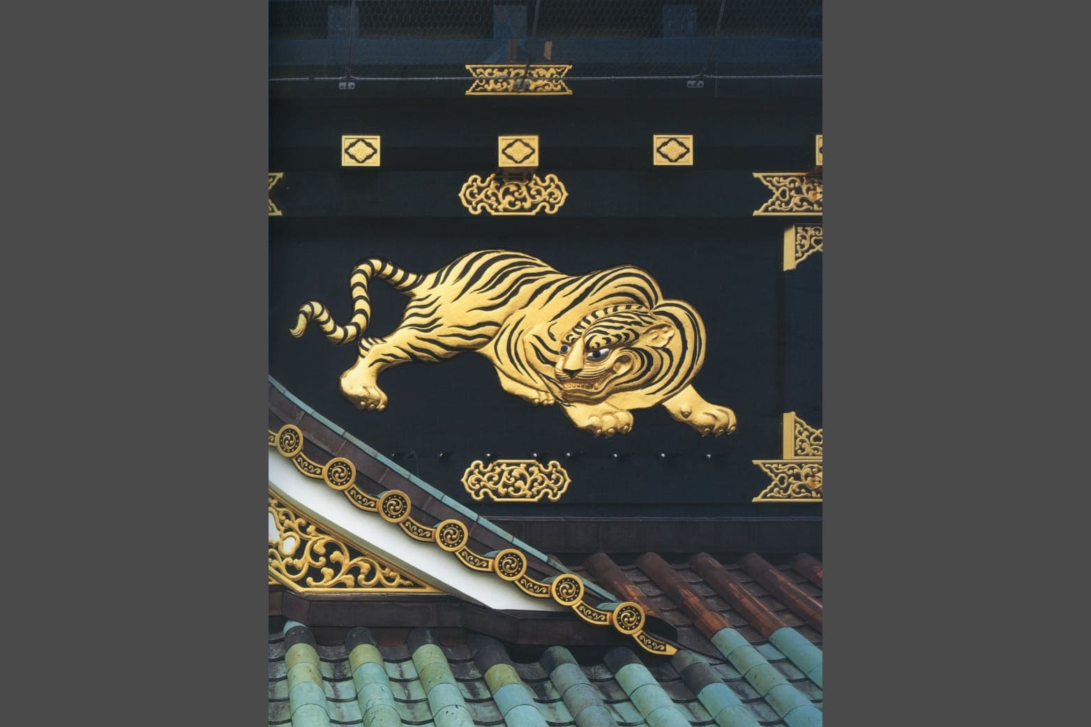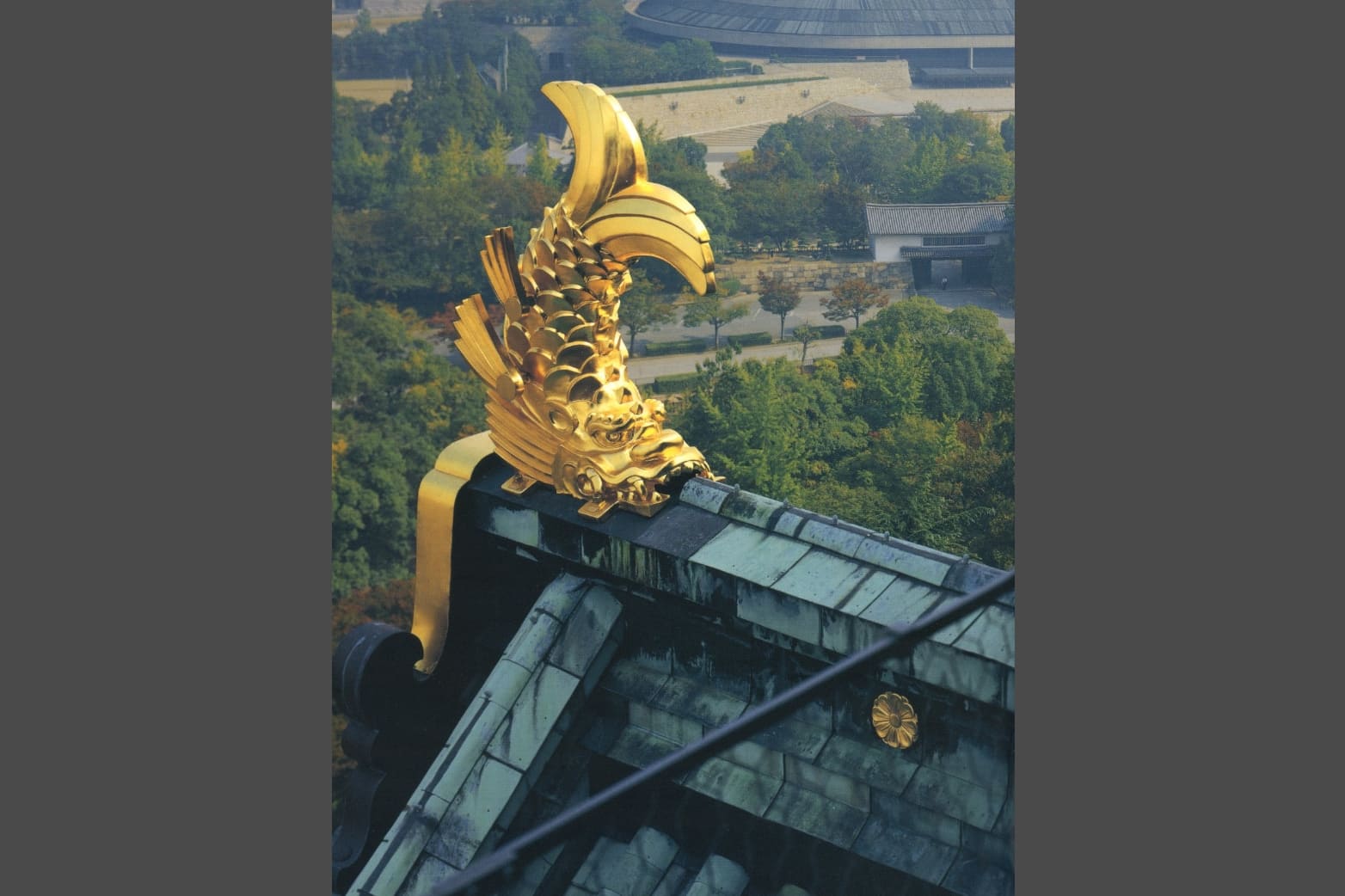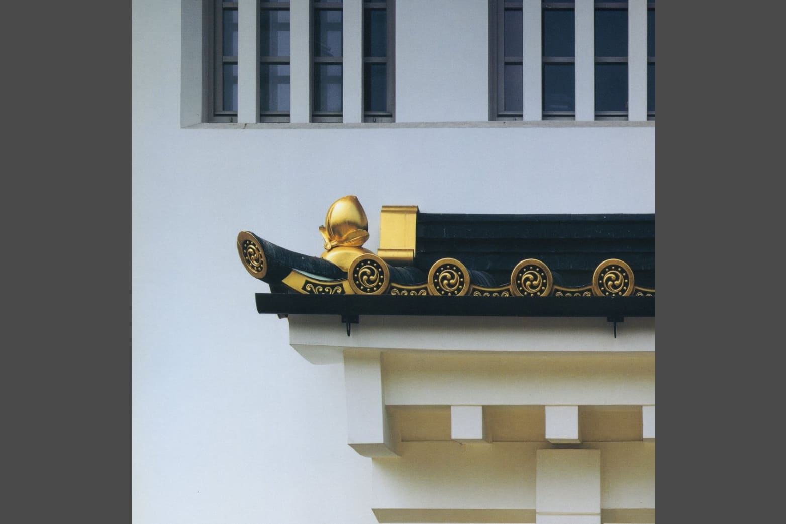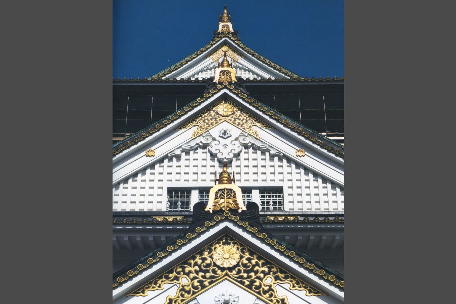 豊臣秀吉が築いた「黄金の城」大阪城。その輝きを蘇らせる「平成の大改修」において、私たち礒村は装飾業務の一切を拝命しました。 天守を飾る鯱鉾(しゃちほこ)や鬼瓦、虎のレリーフ。これら外装の金箔押しは城の命です。昭和の復興から65年を経て、改めて問われる「黄金の質」に対し、職人が全力を傾注して挑みました。21世紀の大阪を見守るその圧倒的な輝きを、確かな技術で支えられたことは私たちの誇りです。